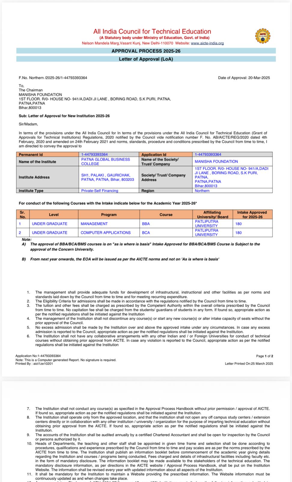 Download our AICTE approval documentation.